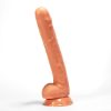 Υψηλής ποιότητας, εύκαμπτο, σε σχήμα πέους dildo με αίσθηση δέρματος, κατασκευασμένο από υλικό παρόμοιο με τον ιστό του σώματος, χωρίς κινητήρα, με αγγειακή επιφάνεια και με πρόσθετους όρχεις. Η βεντούζα του μπορεί να στερεωθεί σε επίπεδη επιφάνεια.